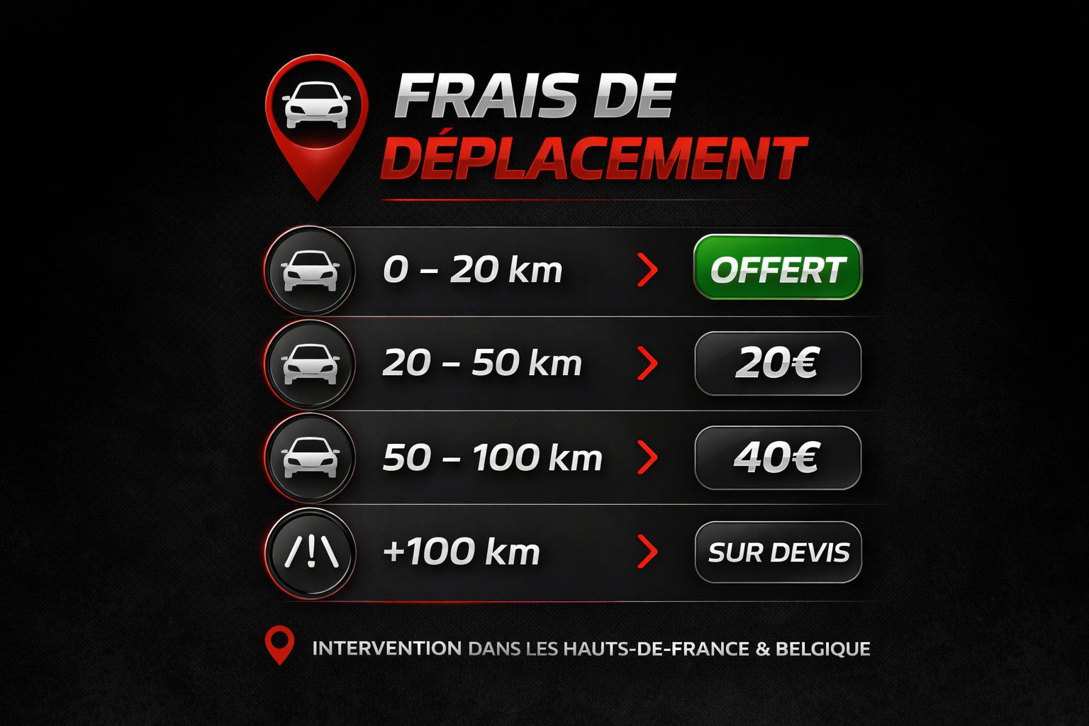 Des frais de déplacement peuvent s'ajouter